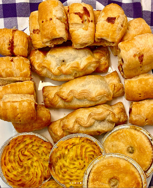 The Pork Pie, Pork & Stilton Pie, and Scotch Egg should be taken out of the fridge and brought to room temperature about 30 minutes before serving.